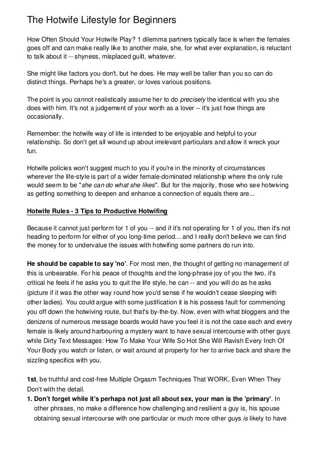 The hotwife lifestyle for beginnersdont lie or retain points to you.